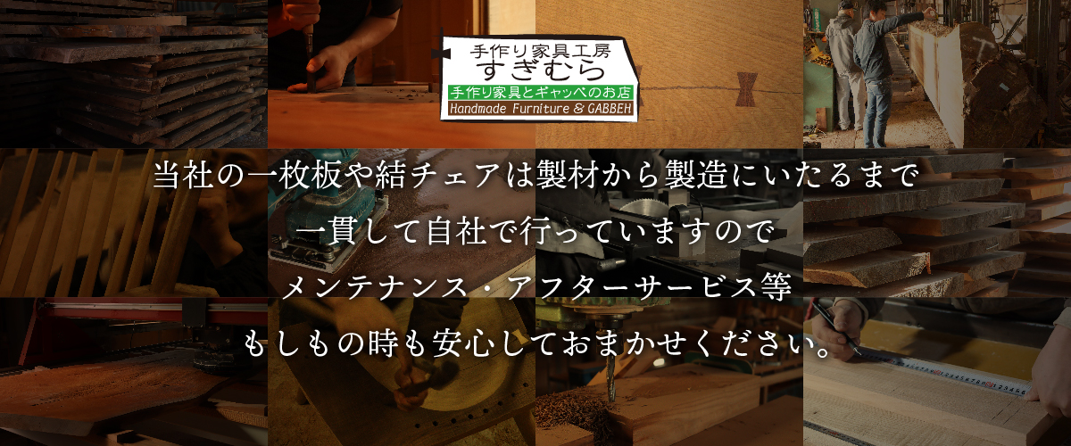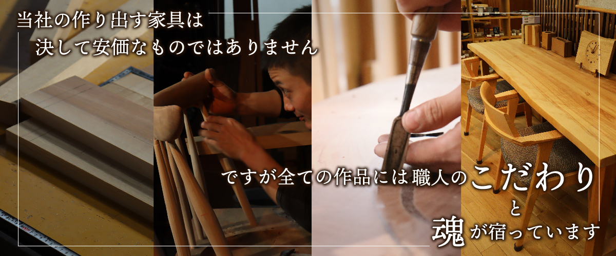 当社の作り出す一枚板テーブルは決して安価なモノとは言えません。ですが全ての作品には職人のこだわりと魂が宿っています。当社の作品を深く愛してくださるユーザー様の為、日々試行錯誤しながら心込めて家具制作に取り組んでいます。