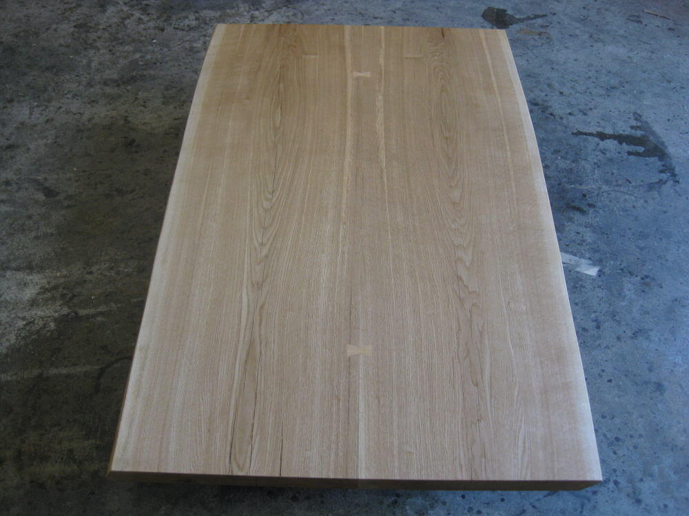 4名様でゆったりご使用になれるサイズの楢の2枚ハギブックマッチが仕上がりました。左右が同じ木目になるように仕上げるブックマッチは乾燥からハギ合わせまで丁寧に加工いたします。特に硬く比重が密な楢の木を使用したブックマッチは他メーカーがなかなか仕上げない材種です。こちらの板は木目がきめ細かく木味の良い仕上がりになりました。