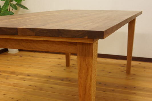 お客さまのご要望に合わせてサイズを選べる、オーダーテーブルです。お部屋に合わせやすい、シンプルなデザインで仕上げています。華奢な印象ですが、安心して長年ご使用いただけます。脚部はノックダウン式ですので六角レンチで脱却が可能になっています。天板トップは[ブラックウォールナット・ブラックチェリー・オーク]の中からセレクトいただけます。脚部の素材はオーク材で統一しています。