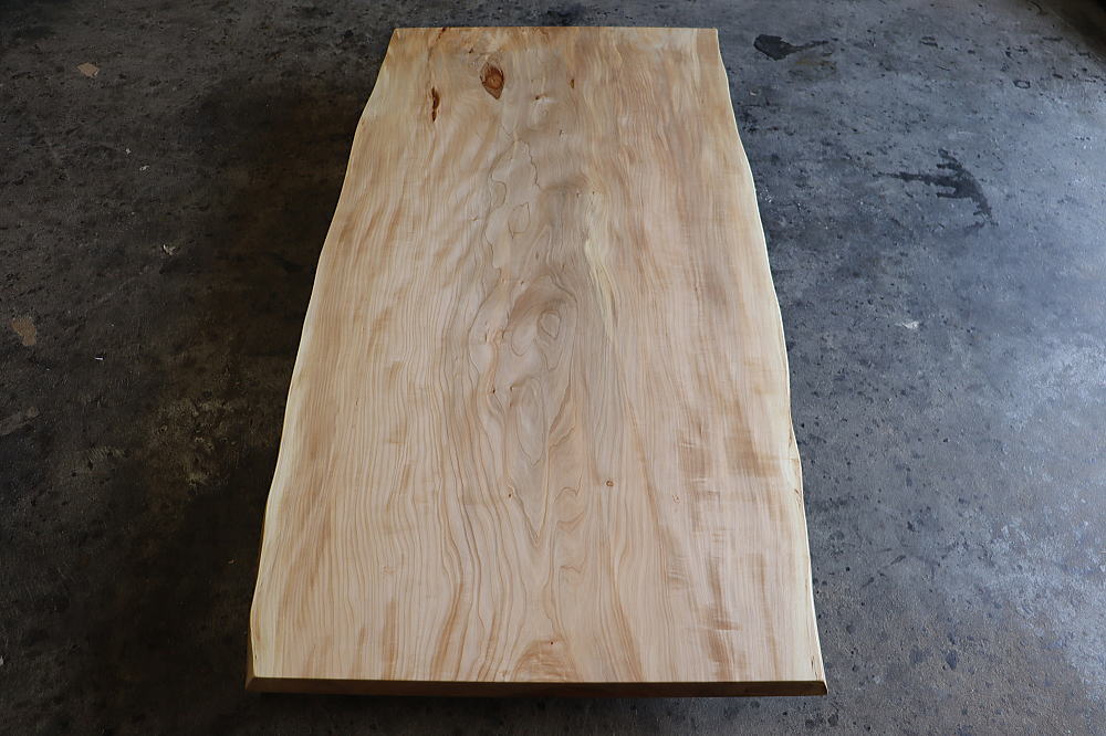 2000㎜サイズの特大のの木の一枚板が仕上がりました!8名様でもゆったりご使用になれるサイズの天板です。色調は他の栃の木と比べると少し深く味わい深い色合いをしていますので落ち着いた雰囲気のお部屋にもピッタリです!