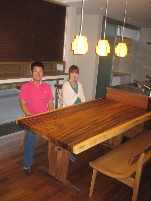 モンキーポッドの一枚板テーブルは床の色とも良く合いますね。O様ご夫妻、また遊びにいらして下さい。