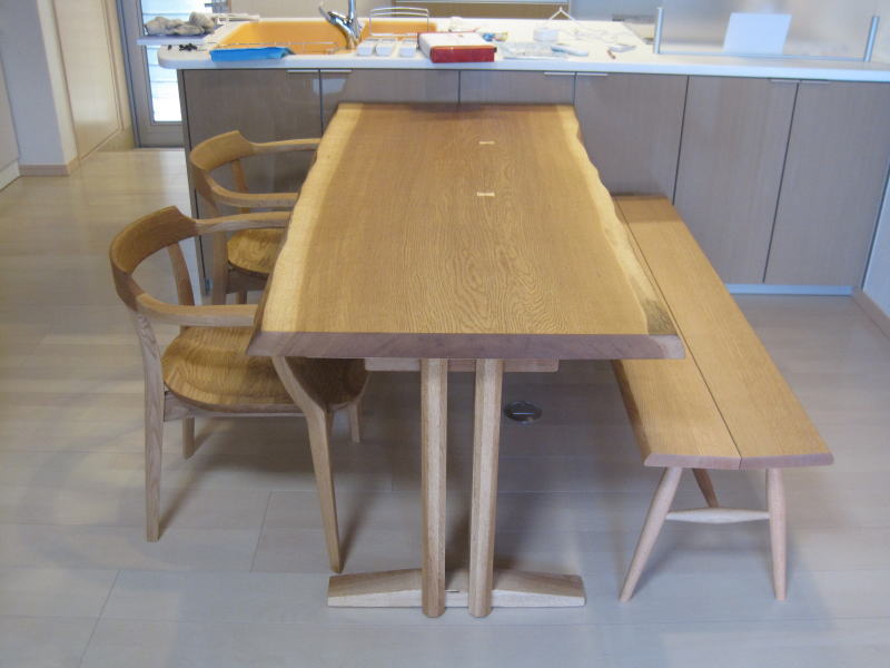 楢の木のダイニングテーブルとクルミの木のソファをご注文頂きました。