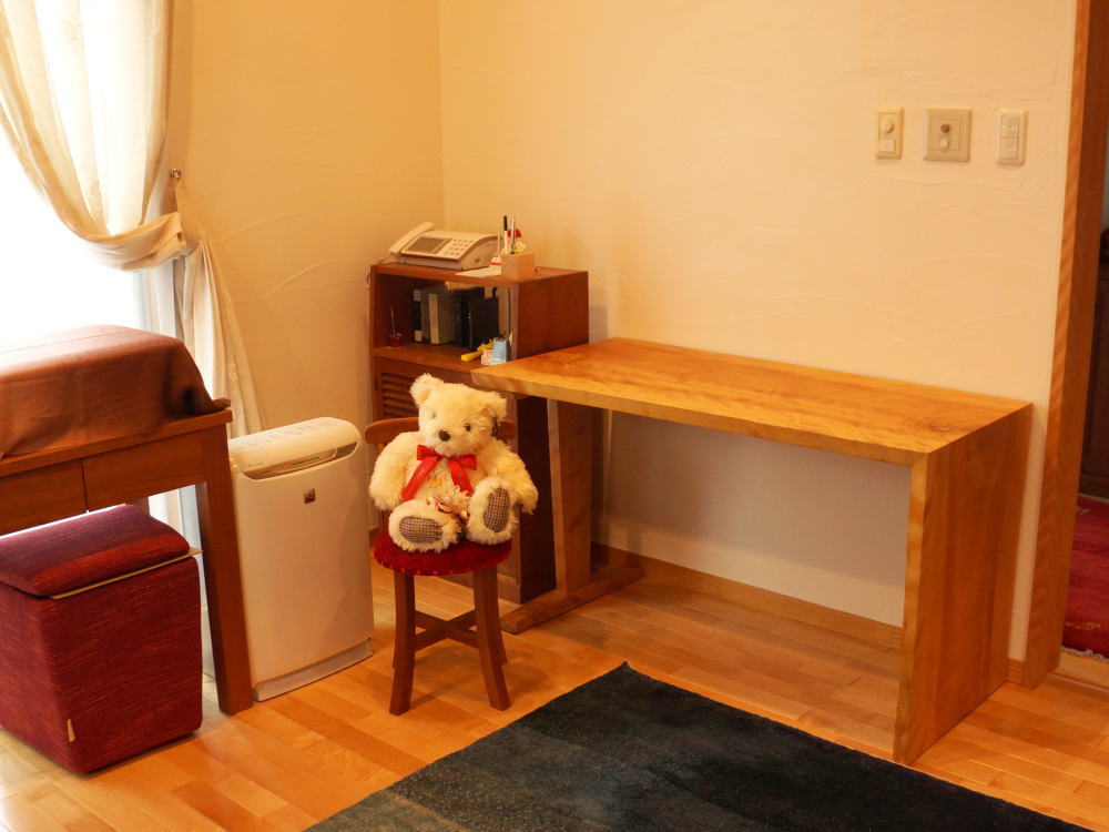 善通寺市のお客様に家具のお届けに行ってまいりました。ダイニングテーブルとしてカバ桜材のブックマッチテーブルを、書斎机として同じくカバ桜のデスクを設置しました。メープル材のフローリングですので、艶のカバ桜が本当によくマッチしています。当社のゾランヴァリギャッベも多数ご愛用いただいていますK様、誠に有難うございました。