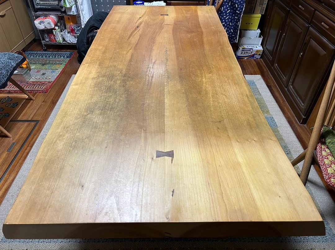 「この銀杏の木でテーブルこっしゃえてよ!」 お声掛け頂き10年が経過した銀杏のテーブルを再度お預かりして磨き上げました! 「また10年後に宜しくね〜(^^♪」 また次の10年後に会えるのを楽しみにしてます‼ 前の記事一枚板 ポプラ 1500 MS-74602023年11月23日 次の記事チェア Combi-10R2023年11月26日