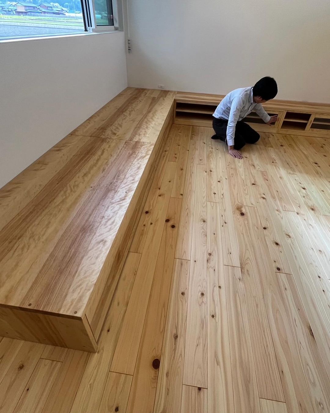 縮杢が一面に浮き上がる良質なカバ桜を使った改心のTVボード✨お客様にもとても喜んで頂けました!