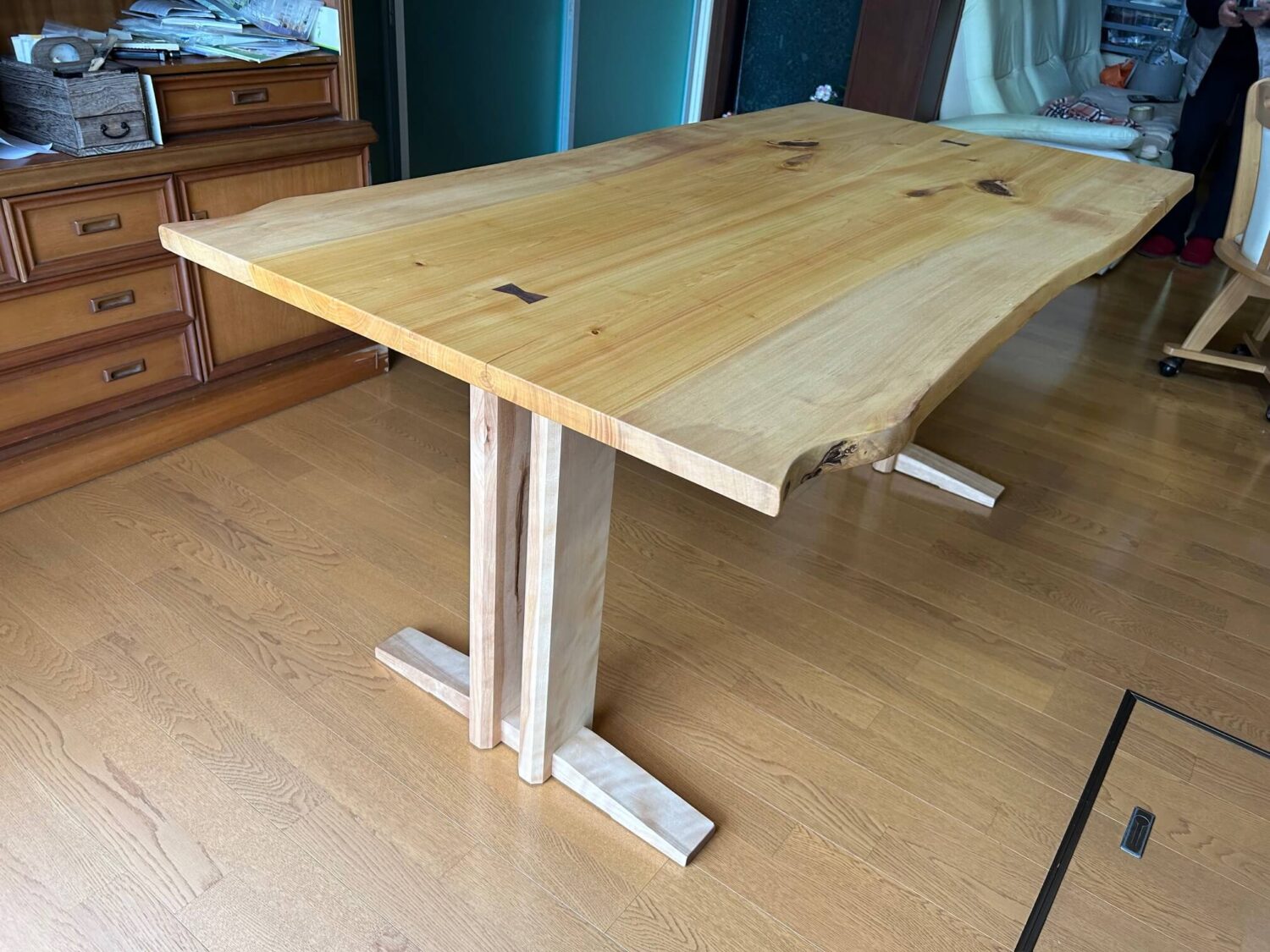 お届けしました銀杏のブックマッチテーブル、S様にも大変気に入って頂きました◯