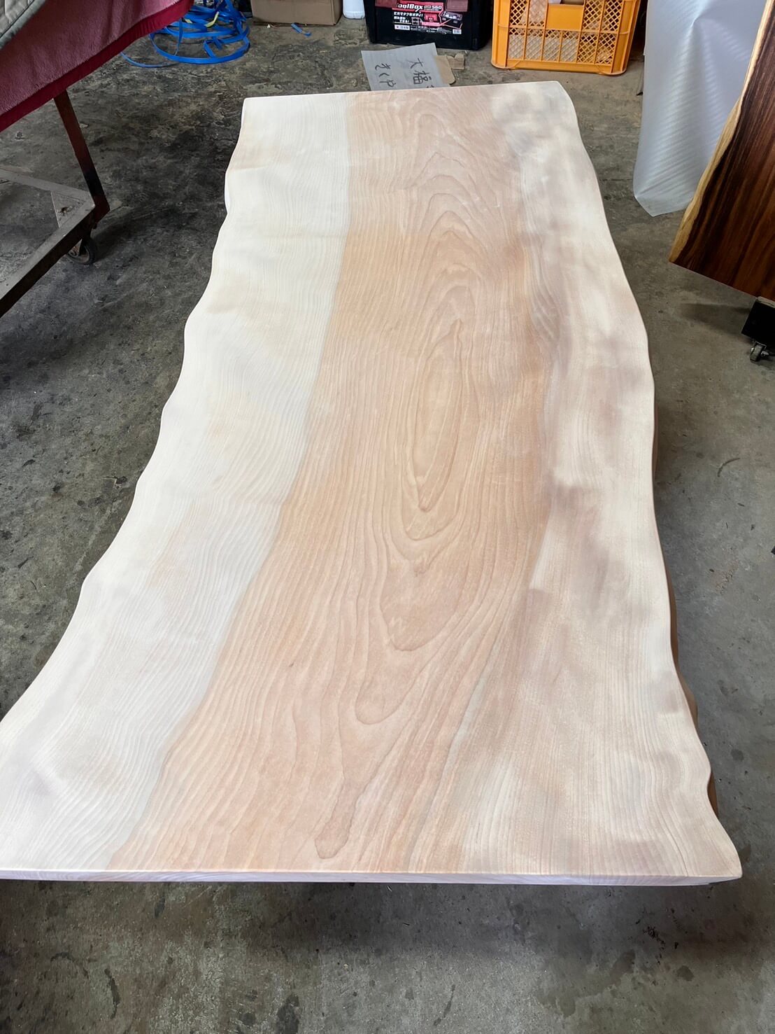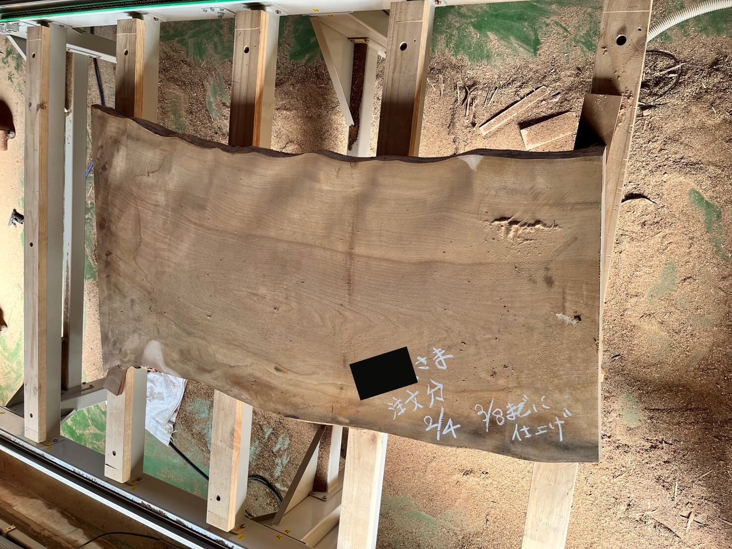 ご来店時にまだ仕上げていない荒板を見て、特徴的な曲がりの形を気に入っていただきご注文くださいました★