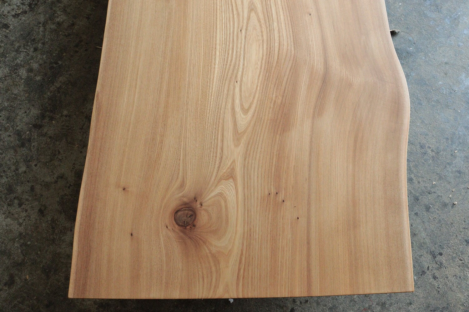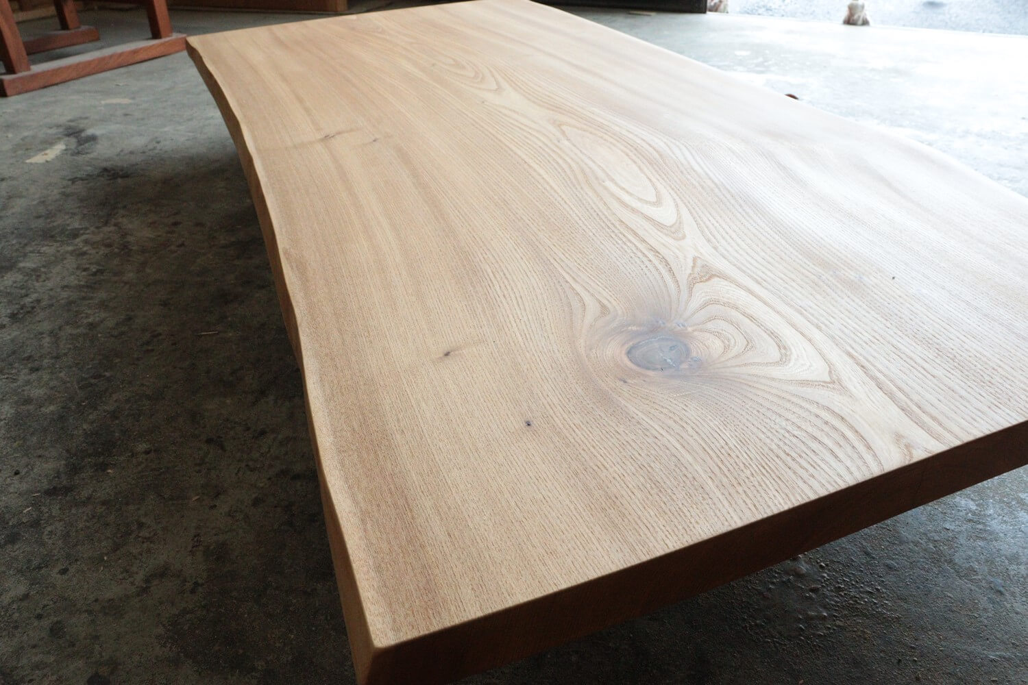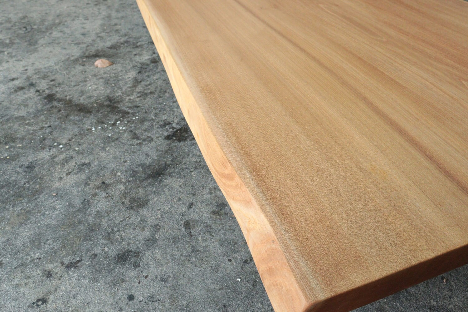 一枚板は柾目の部分の比率が多くなるほど節の数が増えたり、大きな割れが入りやすくなるのですが、こちらの一枚は比較的節も割れも少ない綺麗な一枚に仕上がりました。