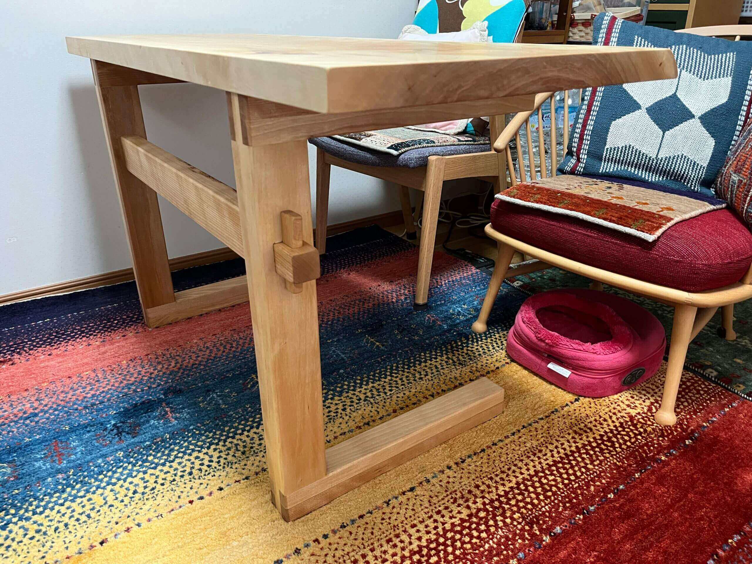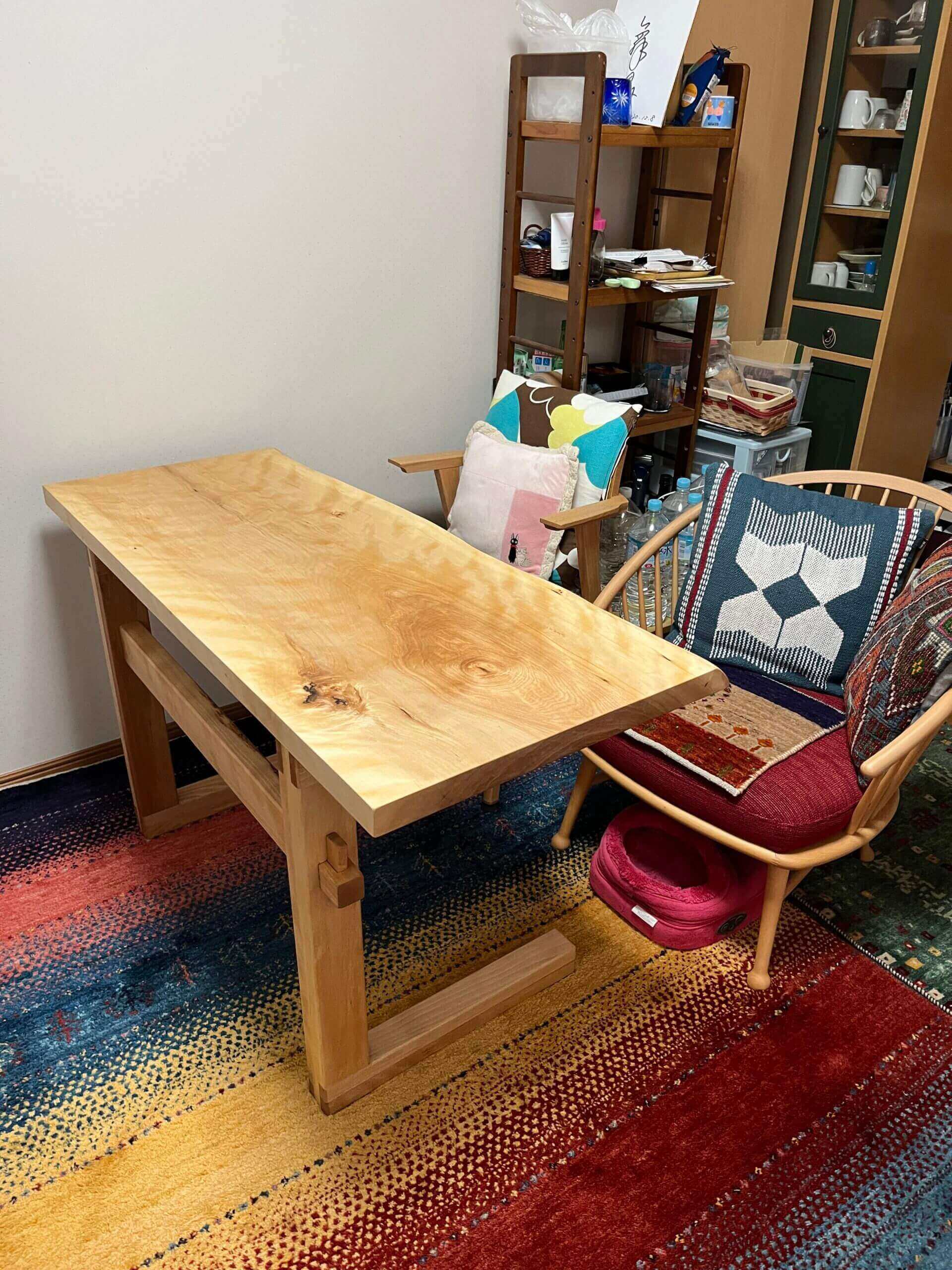 カバ桜のデスクをお届けしました!ギャッベや家具をたくさん購入していただいているM様邸に社長が自画自賛したデスクをお届けさせて頂きました。アイアン脚のような作りを天板と同じカバ桜材で製作!