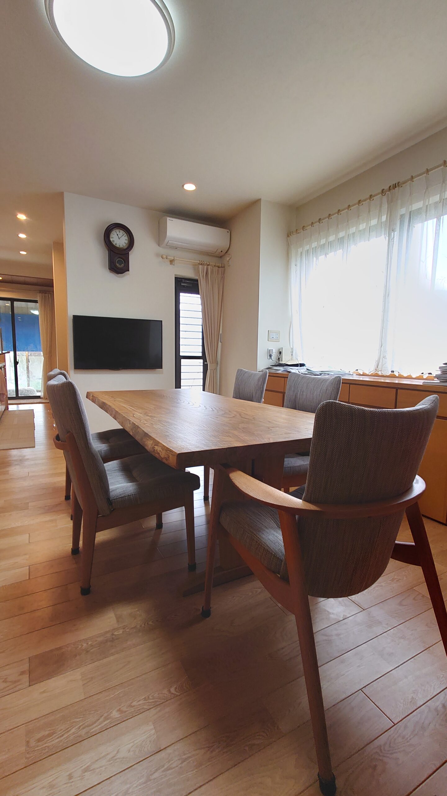 楢(ナラ)材のビッグサイズの一枚板ダイニングテーブルを追加しました!一目で気に入って下さいました、ナラの一枚板テーブル(^^)長さ2100幅1000オーバーのビッグサイズ、近年では中々見られない珍しいサイズをご購入下さりました。天板の迫力に負けない専用設計のテーブル脚も天板に合わせたナラ材で制作、お客様も大満足の仕上がりでした!S様、この度は誠にありがとうございました。