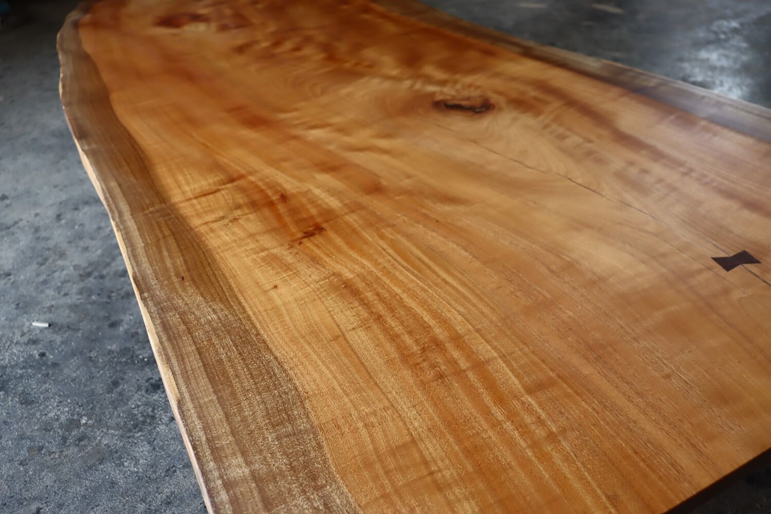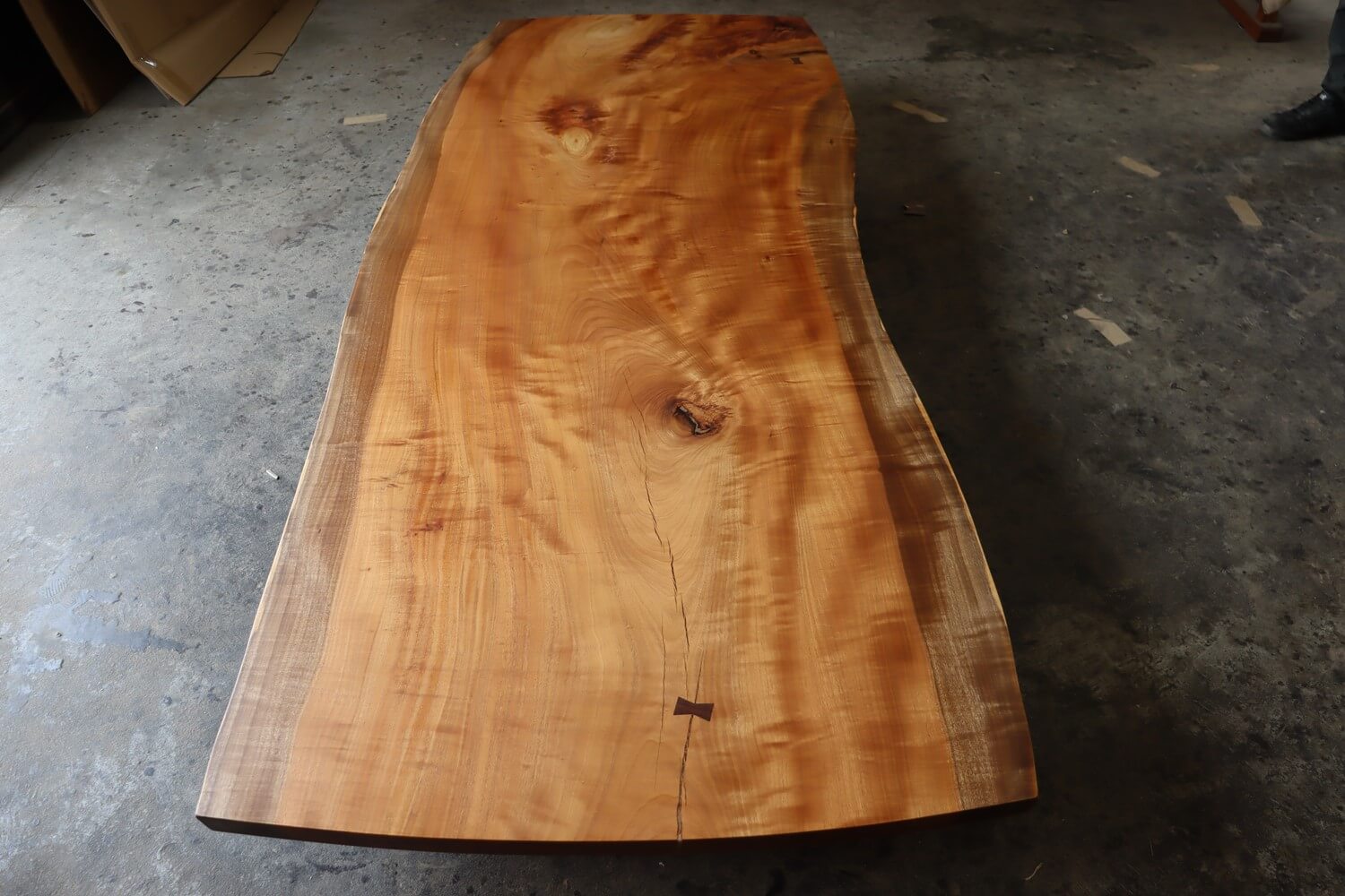 独自の美しさと力強さを兼ね備えた2400サイズの楠の一枚板が仕上がりました。