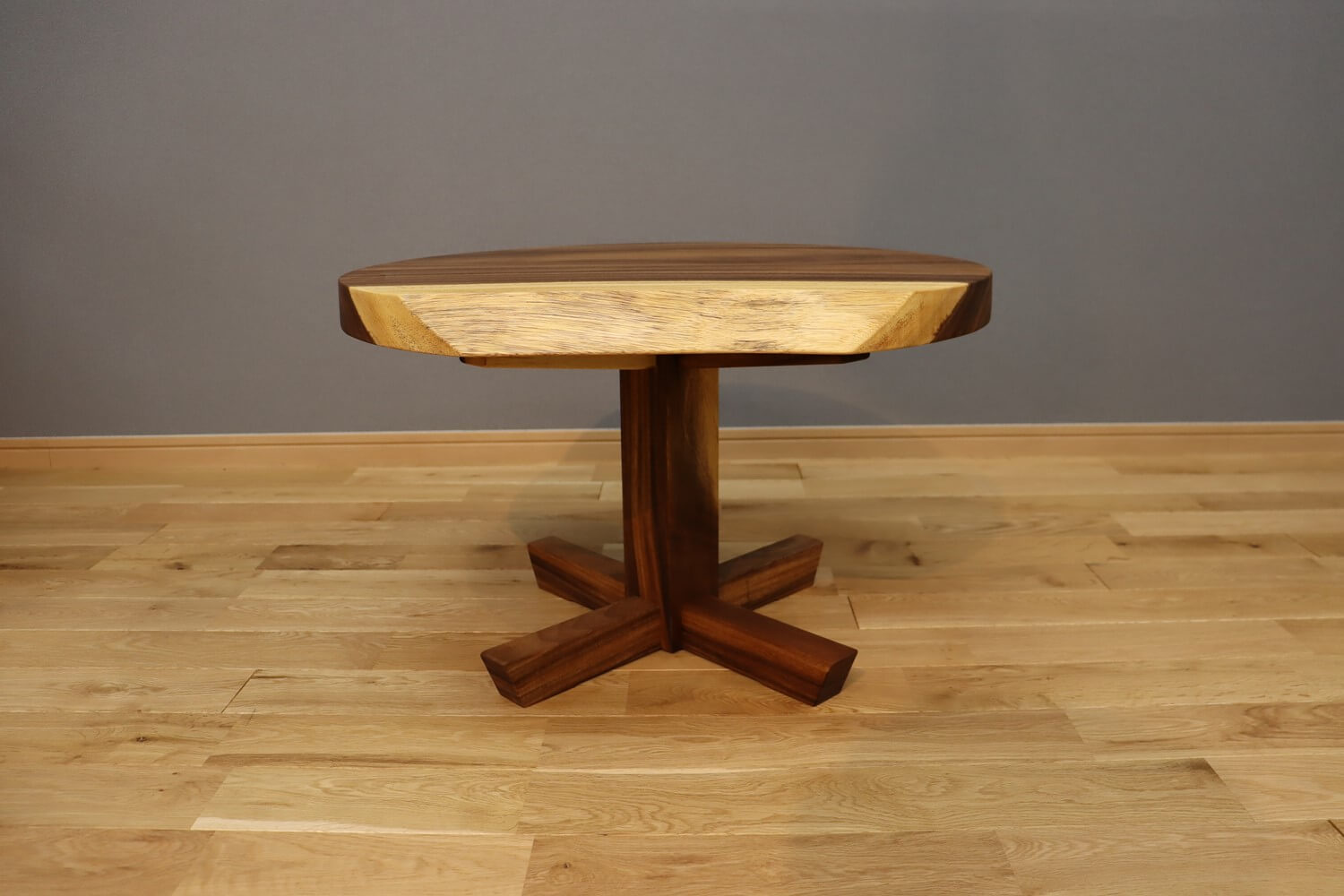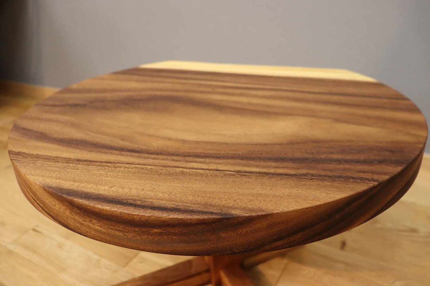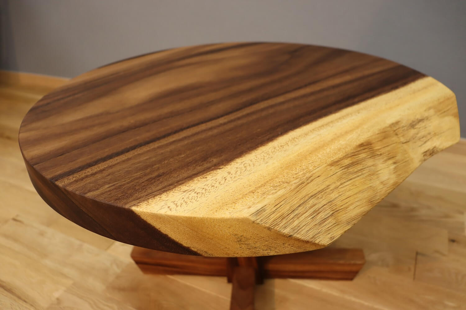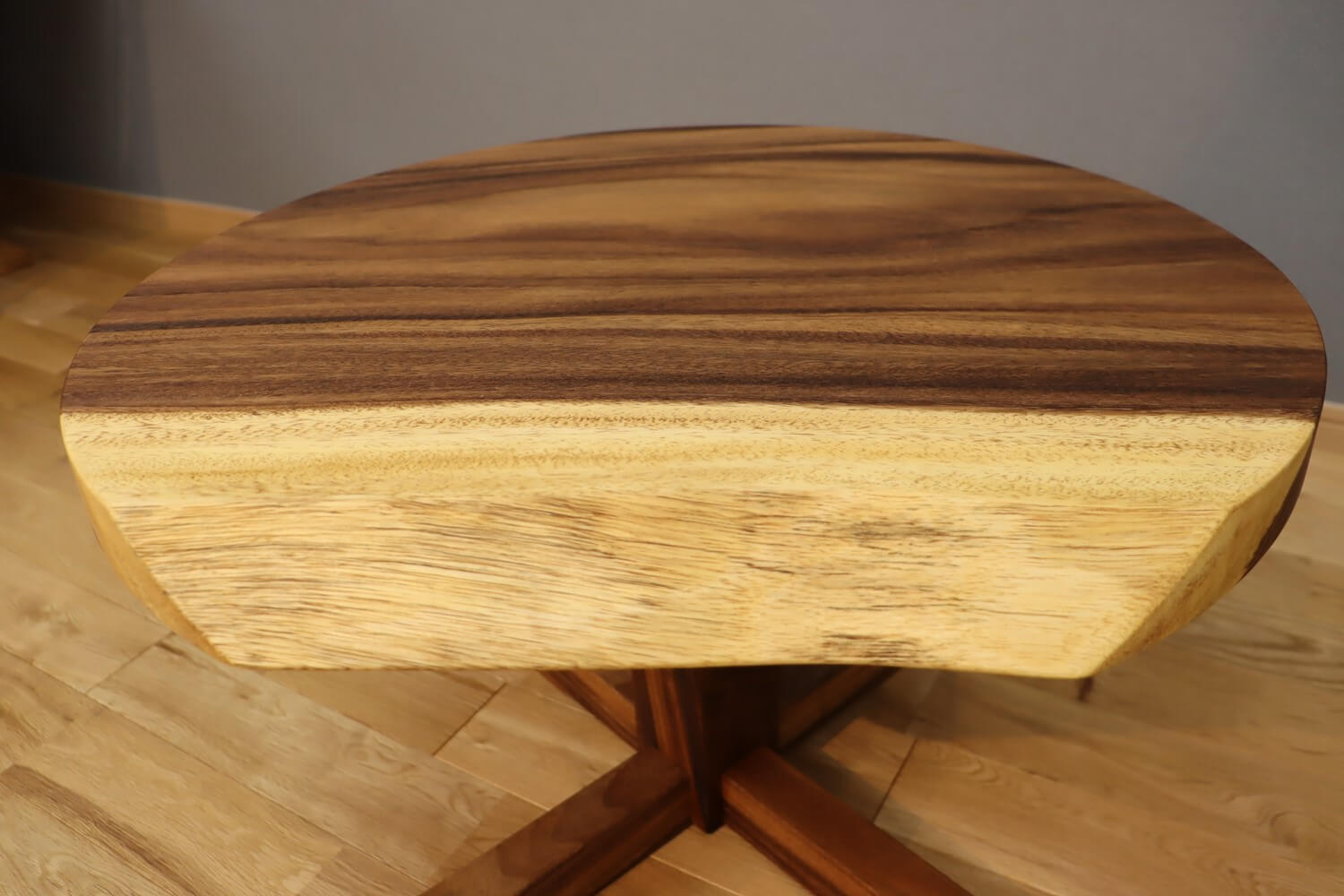 無垢の一枚板はほとんどの場合両端が白太、中心部分が赤身という比率になる為赤身と白太が真ん中でくっきりと分かれると少し違和感を感じるのですが、それがkomaru となればなんとも美しいバランスの取れた1つの作品となります。