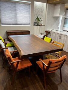 その美しさの中に抜け節の穴があり、自然の壮大さも感じることのできる一枚板ならではの楽しみも味わえる仕上がりとなりました。