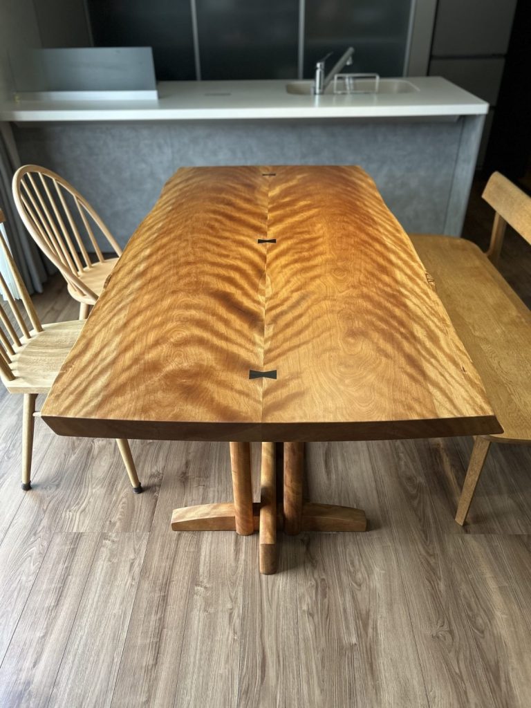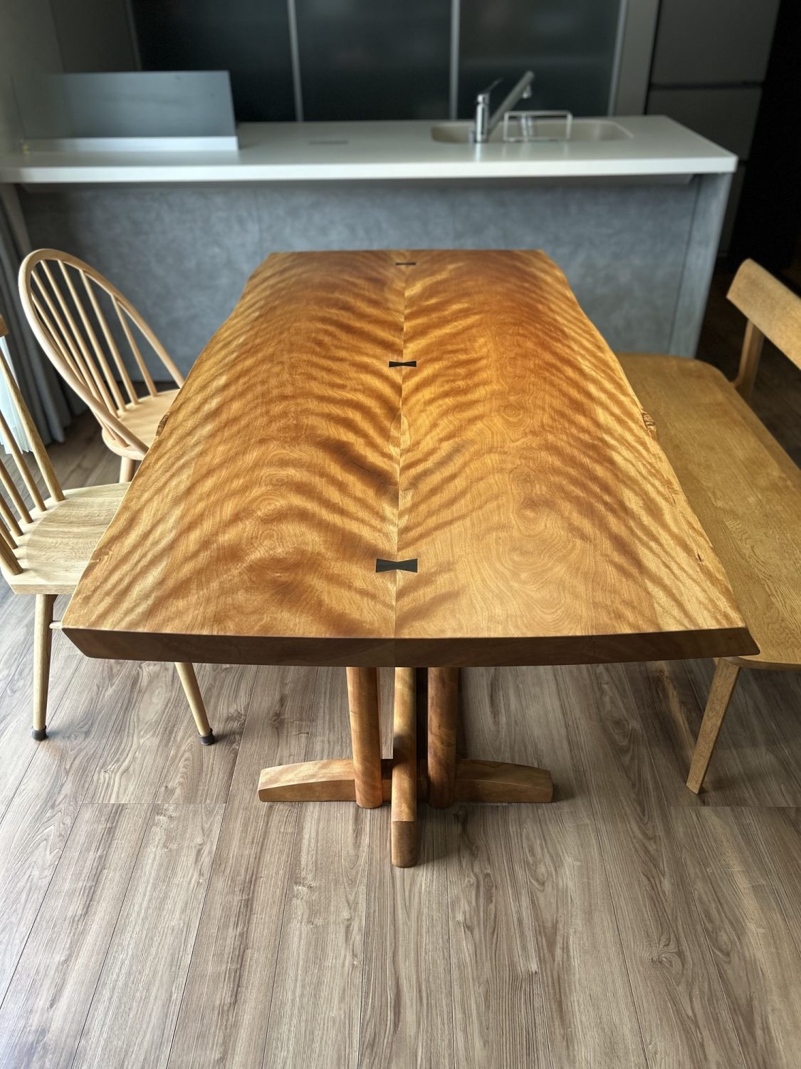 10年以上前にご購入頂きました水目桜のブックマッチテーブルをフルリメイクしてお届けさせて頂きました(^^♪