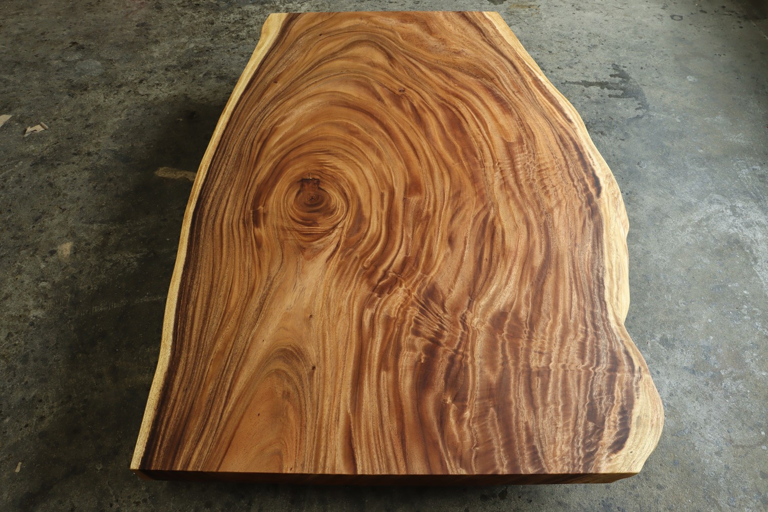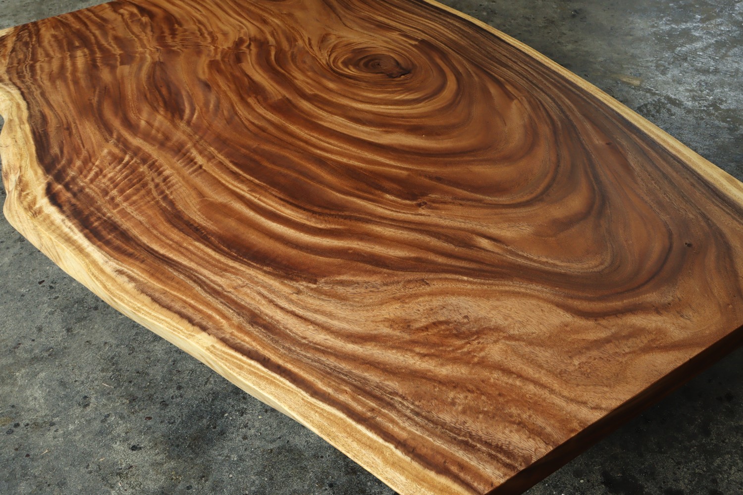 誰もが思わず二度見してしまう、誰もがこの一枚板の前で立ち止まってしまう。それほど圧倒的で神秘的な木目の出たモンキーポッドの一枚板が仕上がりました。