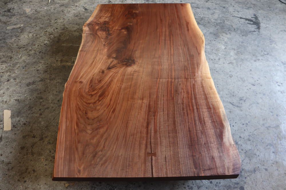 4名様ご使用で広々とお使いになれる幅の広いサイズのウォールナットが仕上がりました!艶のある高級感あふれる見た目は三大銘木ならではの魅力を感じます。合計3つ手作業で入れ込んであるチギリは同じ材質で作られており高級感を残しつつ手作りの暖か味を感じていただけるのではないでしょうか。ぜひいかがでしょうか!