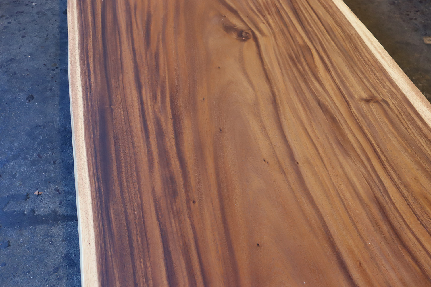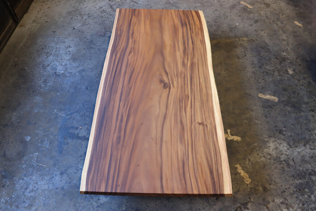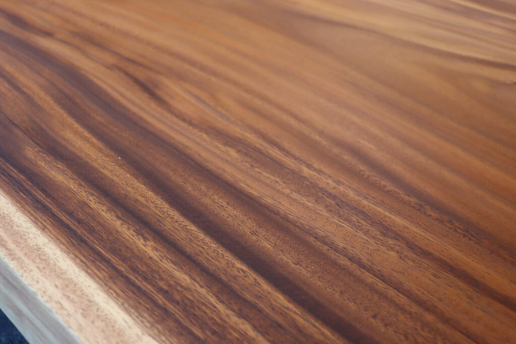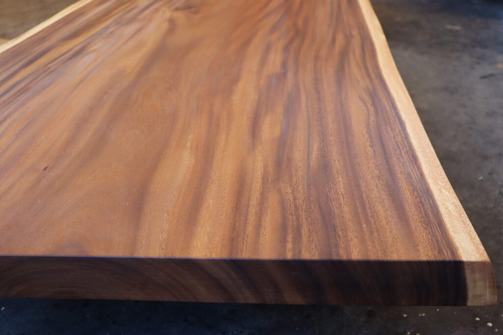抜群の色味、美しい木目、バランスの整った形とまさに三拍子の揃ったモンキーポッドの一枚板が仕上がりました。