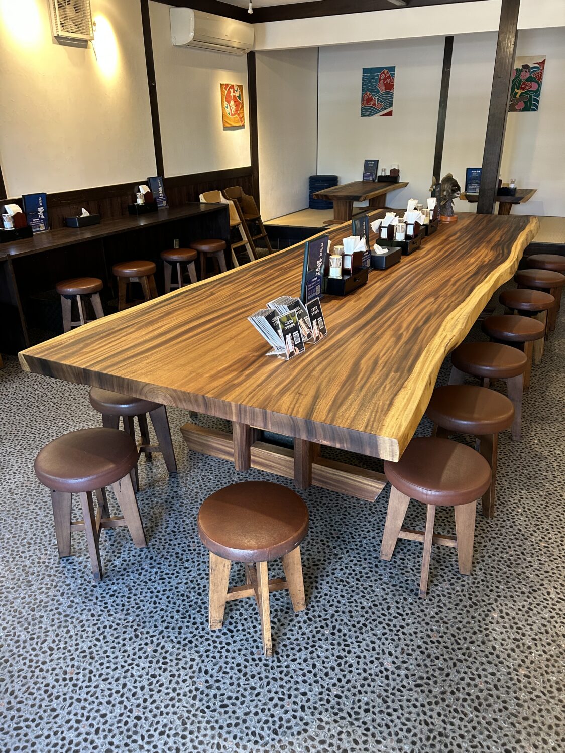 奥の座敷にもモンキーポッドのテーブル3台も良い感じに収まりました!