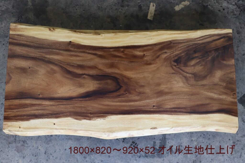 全長1800mmと4〜6名様でゆったりとお使い頂けるサイズとなっておりますが実際目にすると、その溢れんばかりの生命力を感じさせる力強くもやわらかな仕上がりは実際の寸法以上のスケールを持った仕上がり。