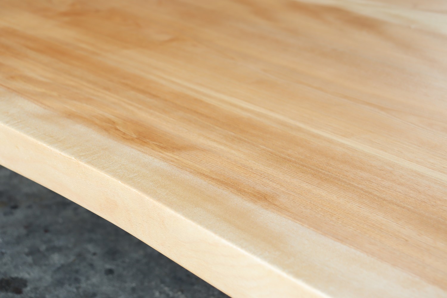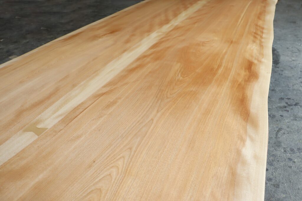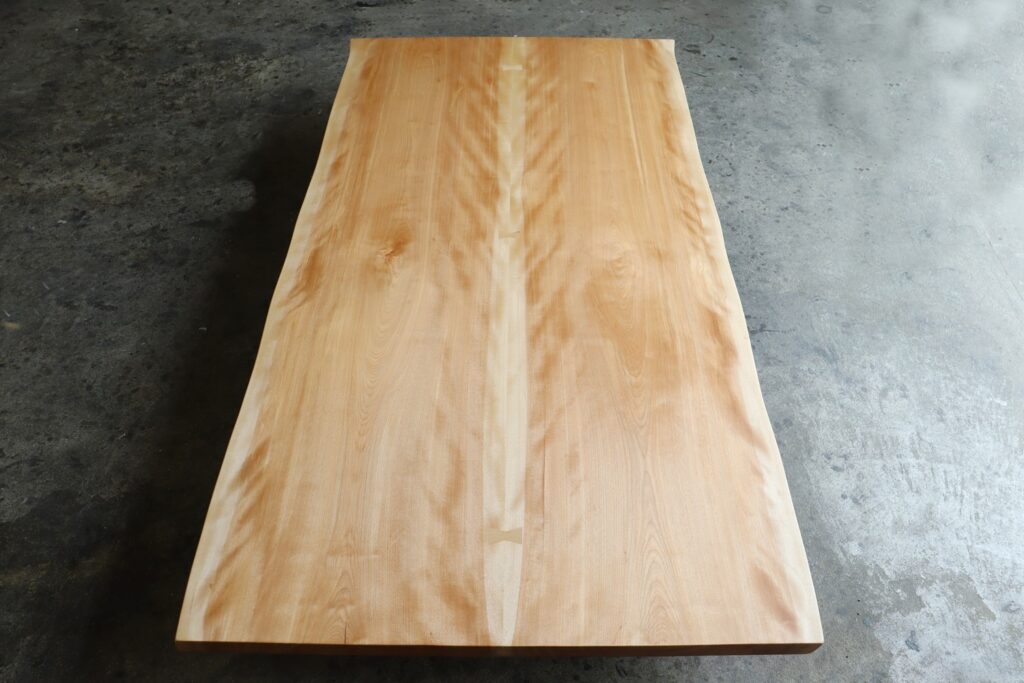 北海道の厳しい寒さを乗り越えることで、より緻密に詰まった木目ときめ細かでなめらかな肌触り。所々に出た光り輝く縮杢はこの樹が深みのある上質な材だからこそ宿る何よりの証。