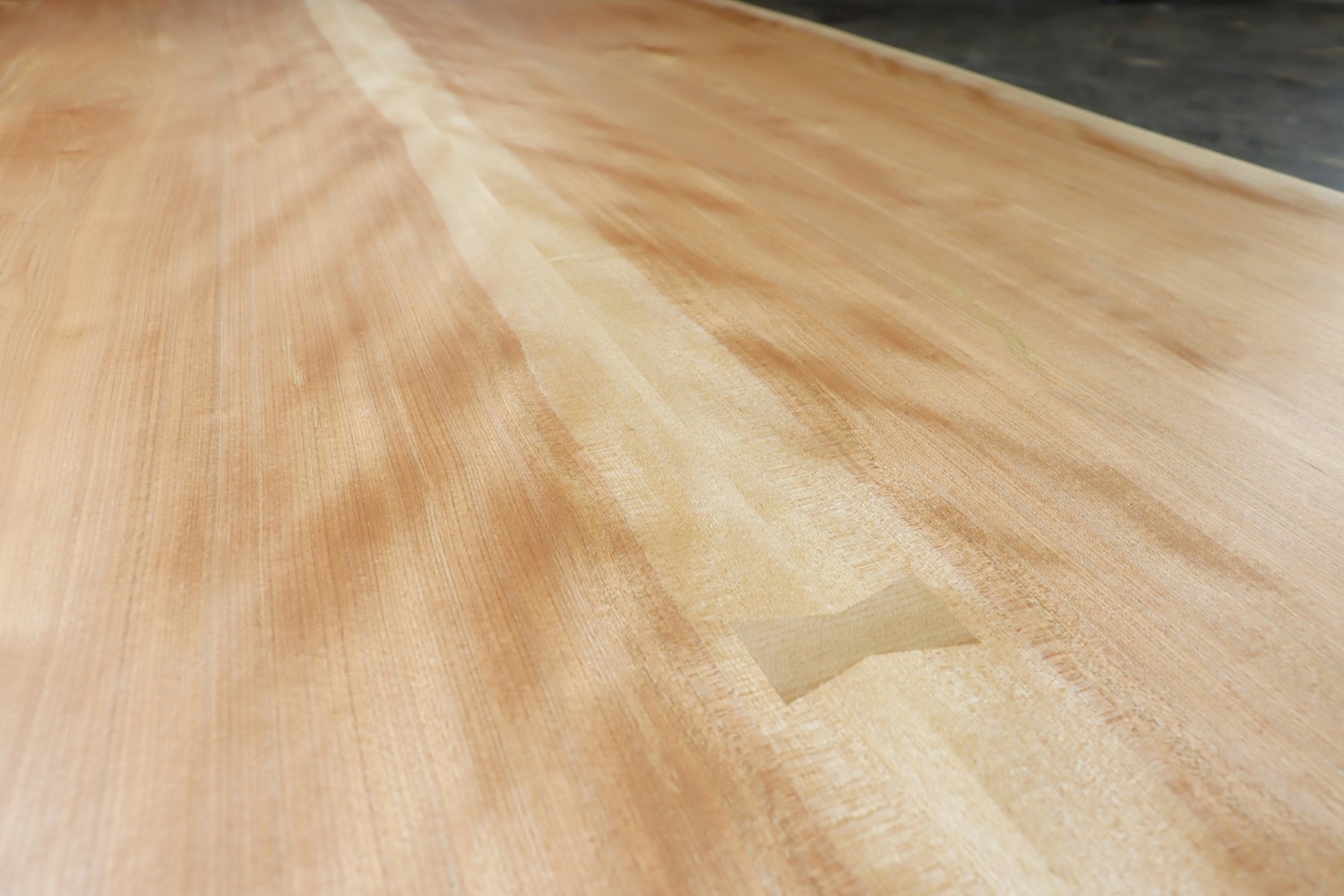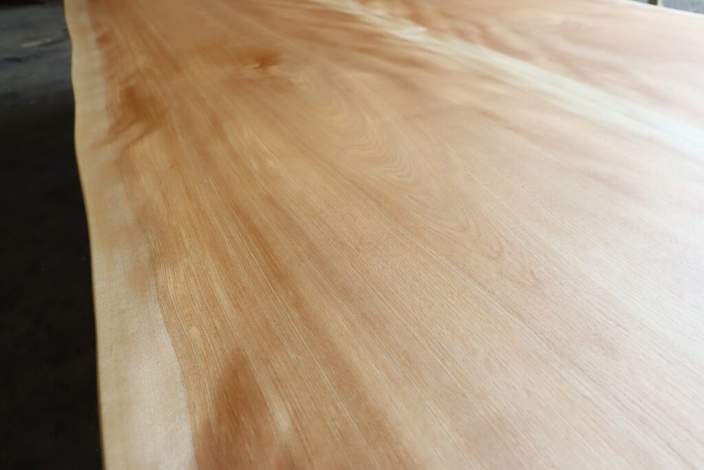 やわらかで落ち着きのある仕上がりとなるカバ桜のブックマッチ天板。