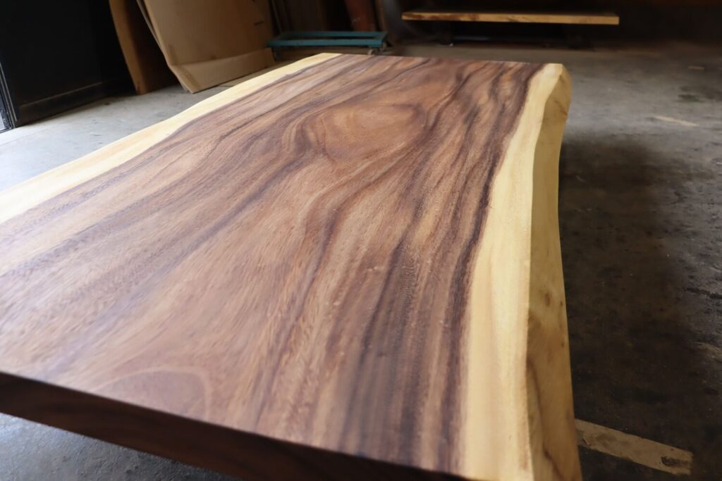今回もまた一段と美しく揺れ動く木目のでたモンキーポッドの一枚板が仕上がりました。