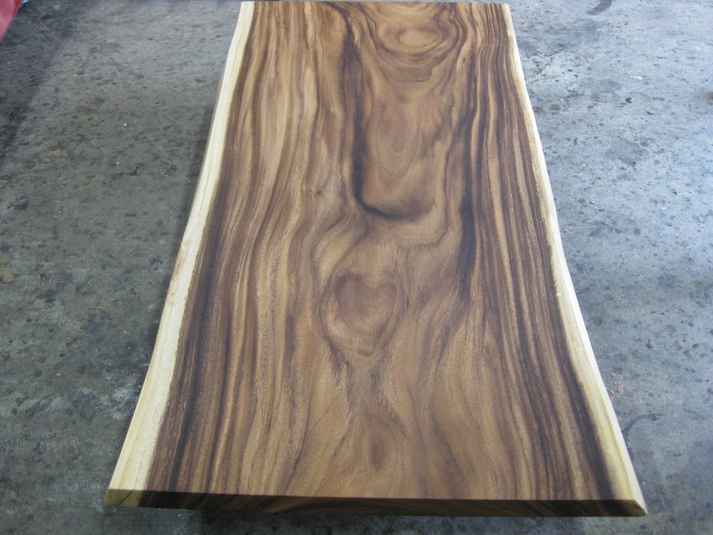 4~6名様でゆったりご使用になれるサイズのモンキーポッドの一枚板が仕上がりました。主に熱帯アメリカなどに分布する幅広く枝をはる外国材になります。赤身と白太の差がはっきりとした特有の面白い木目を持っています。一枚板に個性の強さや住まいの主役としての存在感を求められるのであれば、モンキーポッドはとても魅力的です。樹形だけでなく、色調でも強い個性を堪能できること間違いなしです!