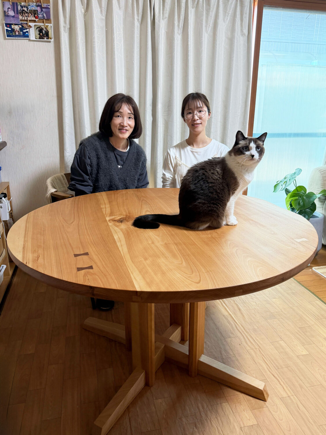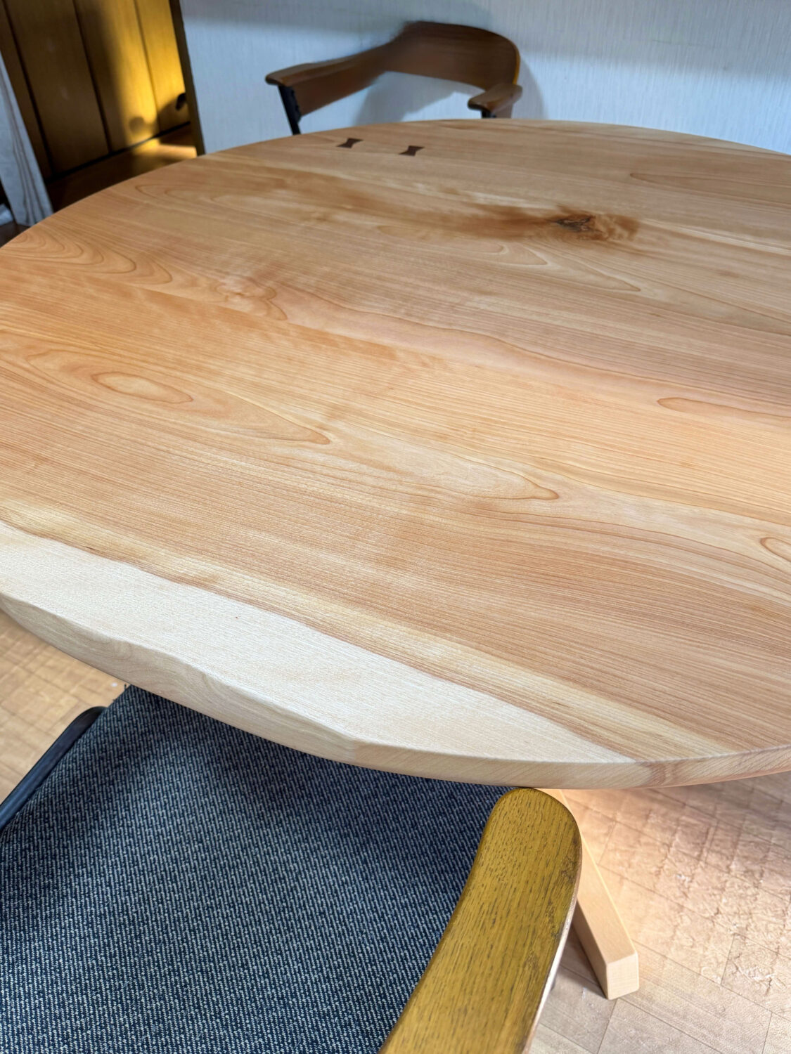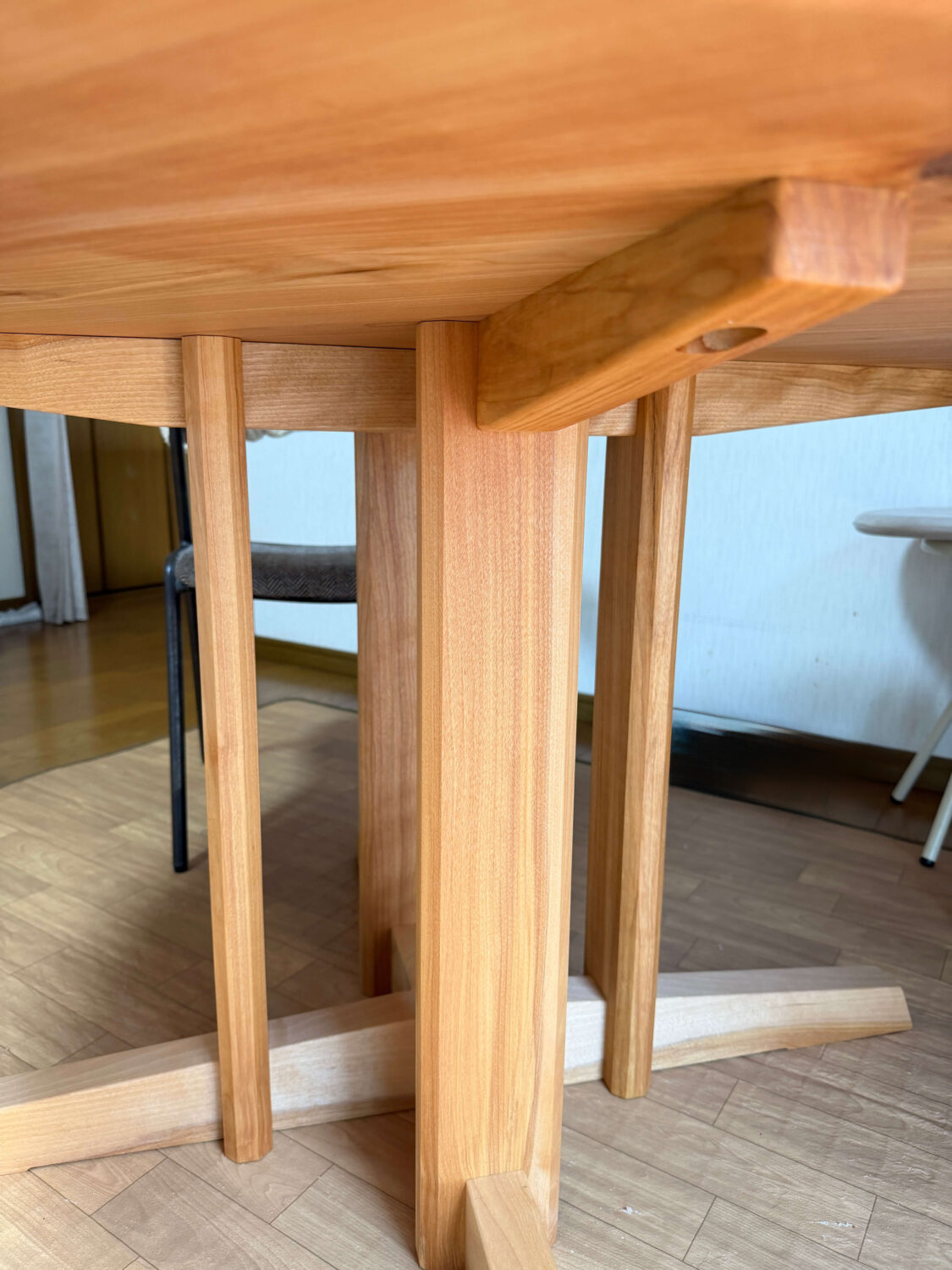 先日に娘さん宅にお届けさせて頂きましたテーブルに引き続き、お母様宅にはカバ桜の丸テーブルを製作させて頂きました('ω')