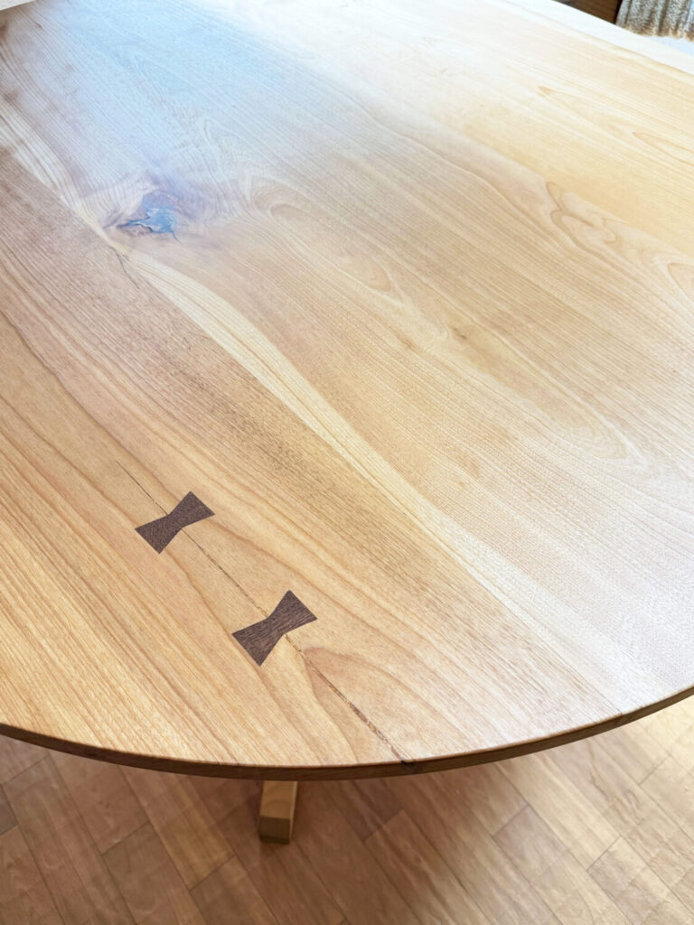 ピンク色の赤身の張った厳選材で、1200サイズの大きな丸テーブルを仕上げました♪