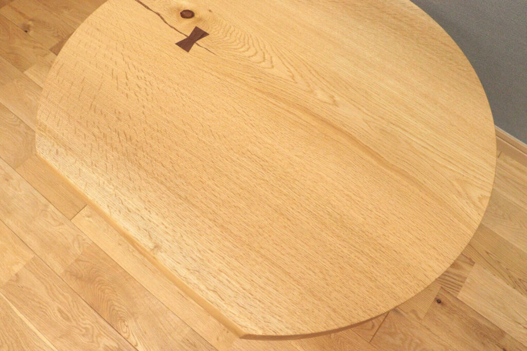 極寒の気候で育った北海道産の水楢ならではの、細かい木目と味わい深い色味を持つ抜群の仕上がりになりました。