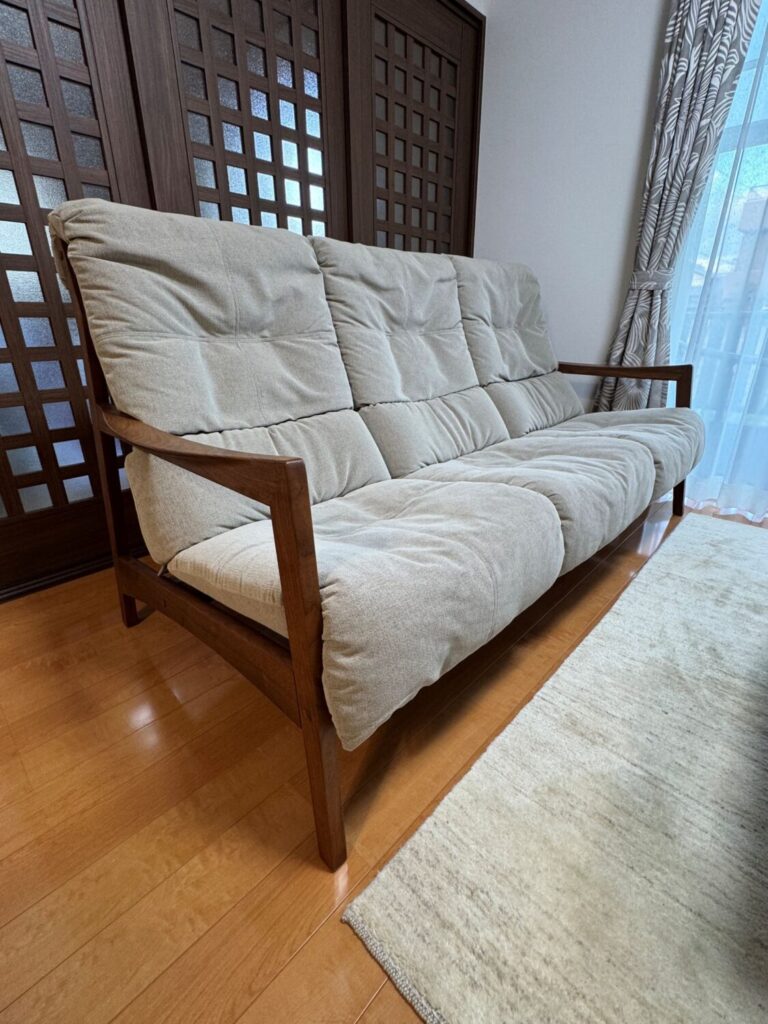 お店で座って、その座り心地を直ぐに気に入って下さった「モルビド」シリーズの3Pソファ。