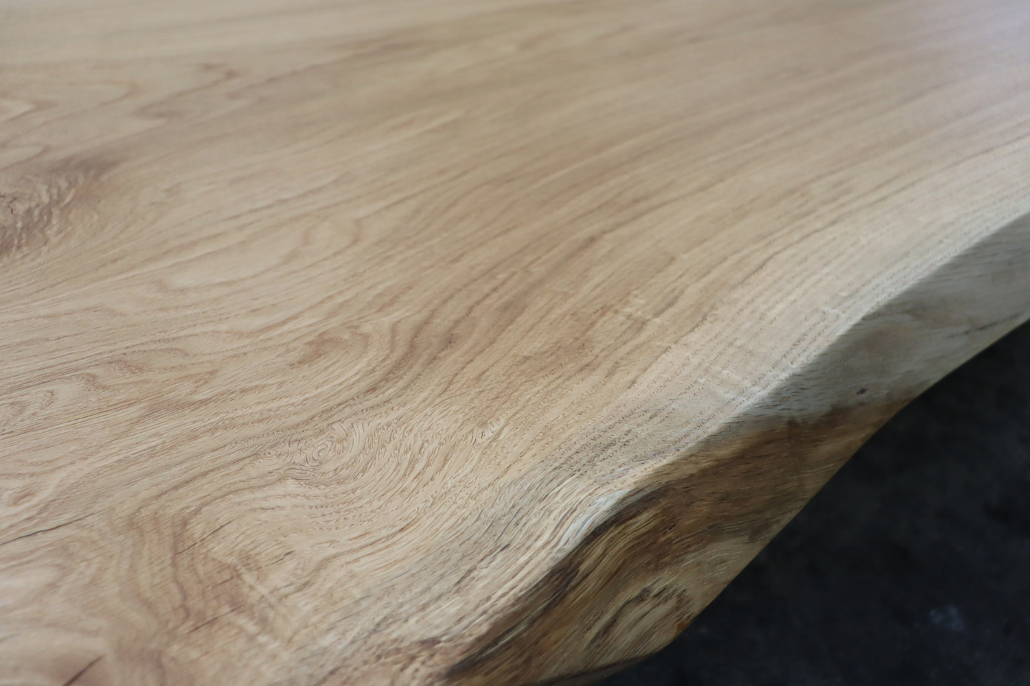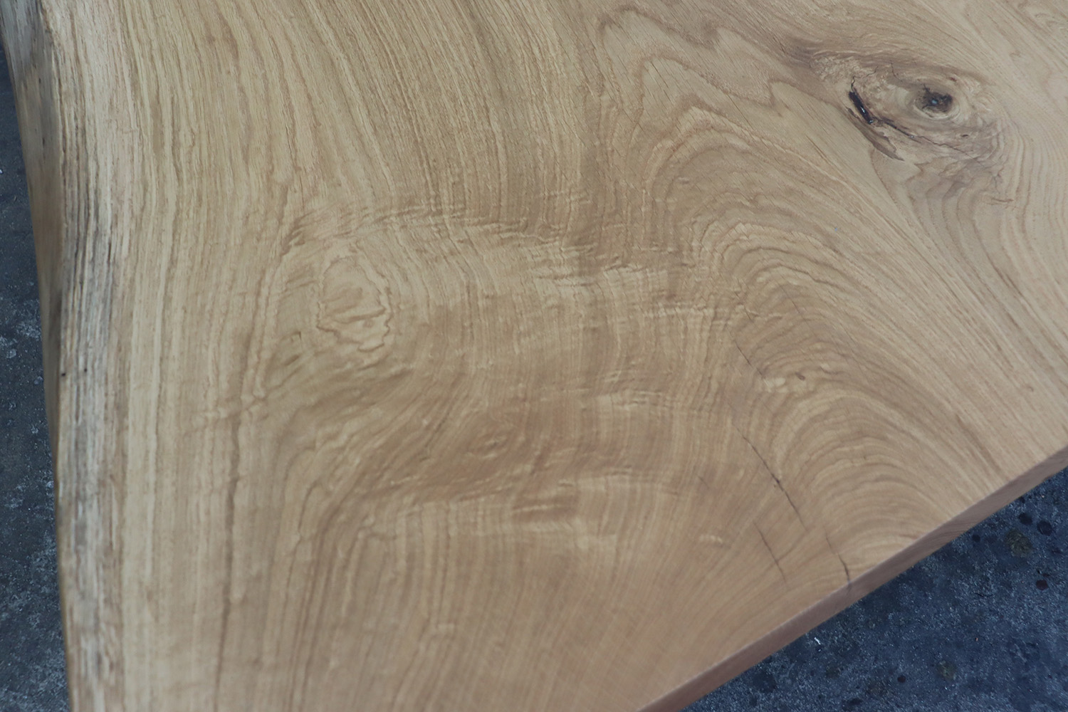 やさしい色合いに、素直でまっすぐと伸びる木目。静かで落ち着きのある印象の楢の一枚板が仕上がりました。