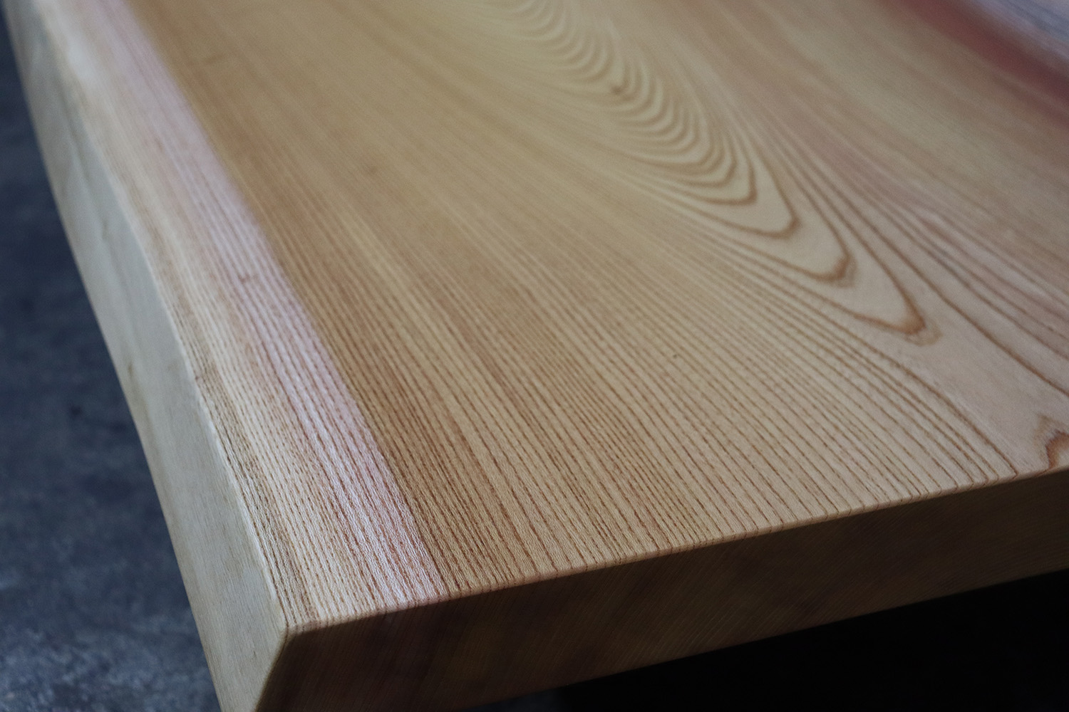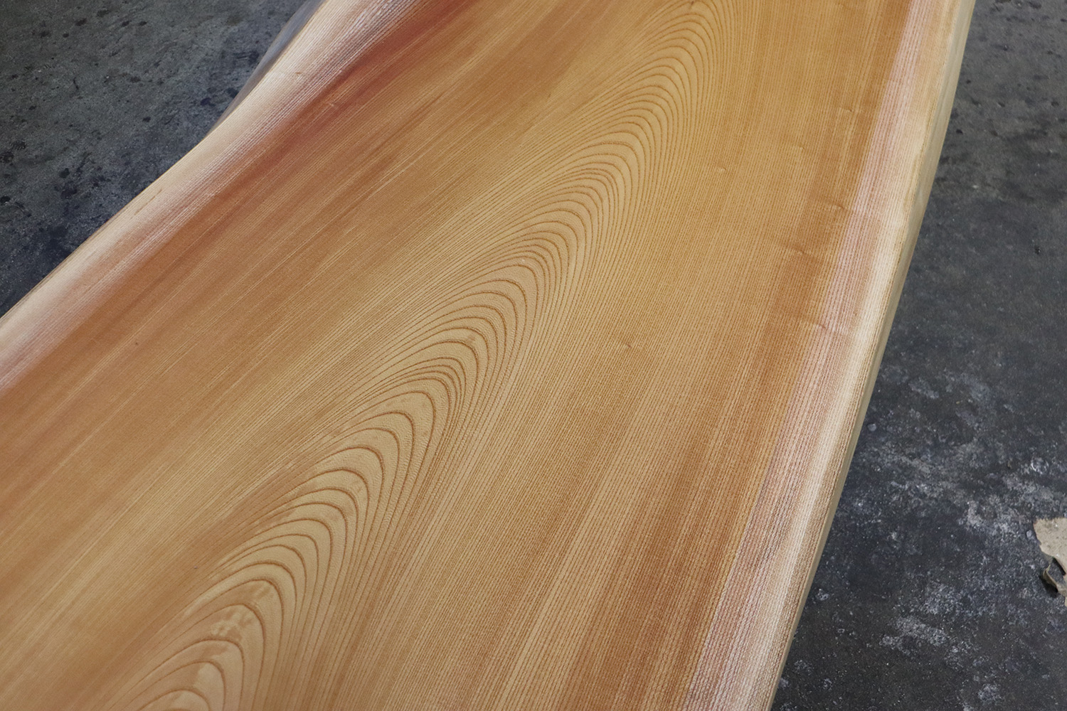 緻密に詰まった力強い木目と暖色のやさしい色合いを持つこちらの一枚は、昔から家具や建築材として親しまれ、使い込むほどに深みを増していきます。